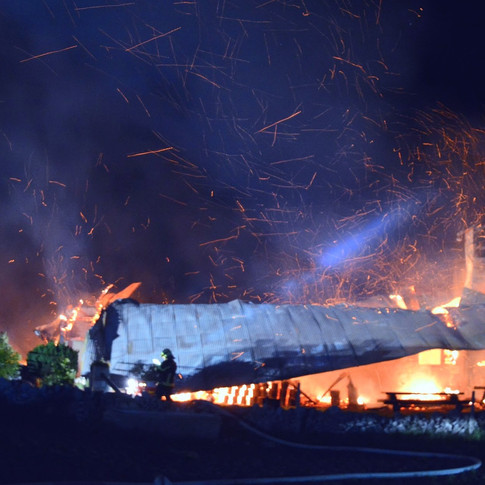 Rapidement sur place, les premiers intervenants ont constaté l'inflammation totale de la bâtisse. L'exploitant des lieux, sérieusement blessé, a été sauvé par les Sapeurs-Pompiers, puis pris en charge par les ambulanciers, avant d'être héliporté par la REGA.